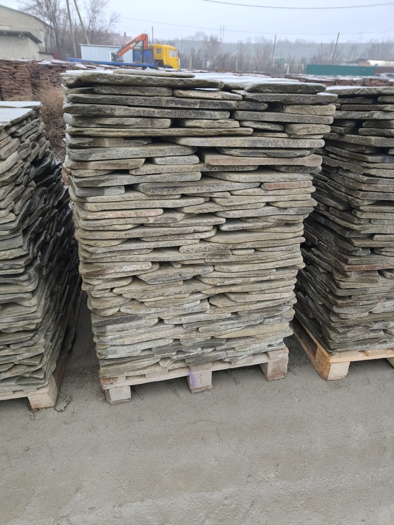 Галтованный серо-зелёный песчаник для мощения дорожек, пешеходных зон, тротуаров на бетонное основание.
